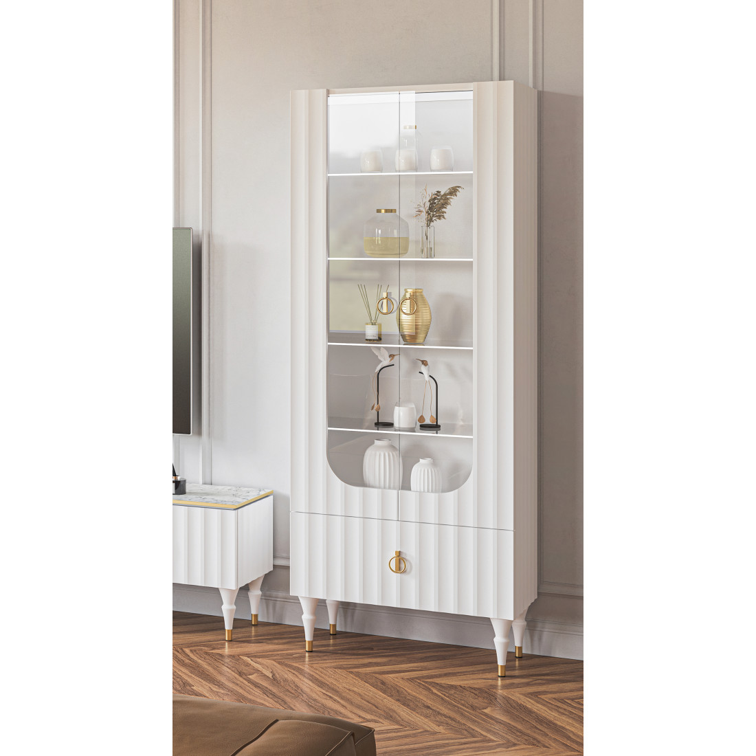 Комбинированный шкаф витрина Лоренсо МН-043-01 белый