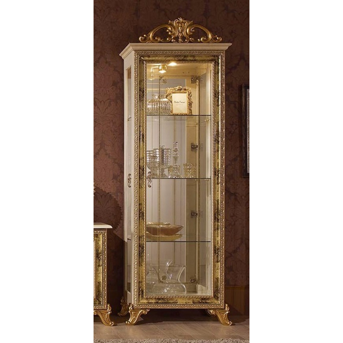 Шкаф-витрина однодверная Катя (беж) - модель выполнена в классическом стиле от Российской фабрики "ДИА мебель". Большие стеклянные полки и корпус из зеркала придаст чувства легкости и визуально поможет расширить пространство комнаты. Выполнена в бежевом цвете с элементами позолоты на фасаде. Такая шкаф-витрина будет не заменима для маленькой гостиной.