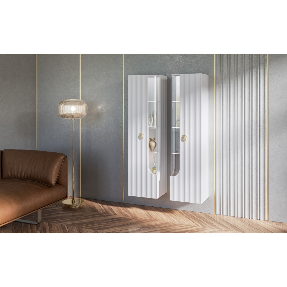 Шкаф-витрина навесной Лоренсо МН-043-02/03 белый Распродажа с экспозиции