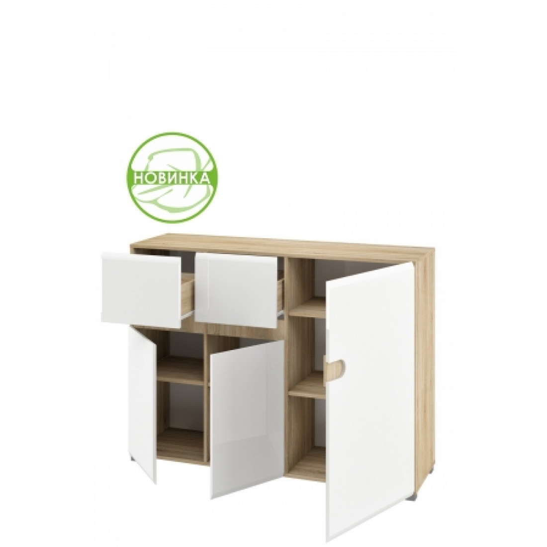 выполнены из белого глянца, а корпус цвета Дуб Сонома.